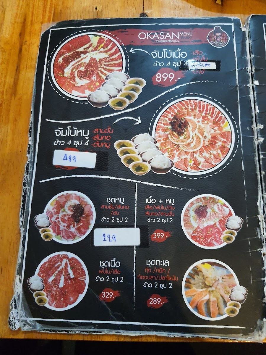 Okasan is a barbecue haven located at 74 Buraphanai Rd, Ubon Ratchathani. This spot perfectly blends Thai and Japanese grilling traditions, specializing in premium Thai Wagyu beef marinated in authentic Japanese style. The menu highlights include Jokarubi, Karubi, Ribeye, and Joros cuts, with occasional special selections that make every visit unique.